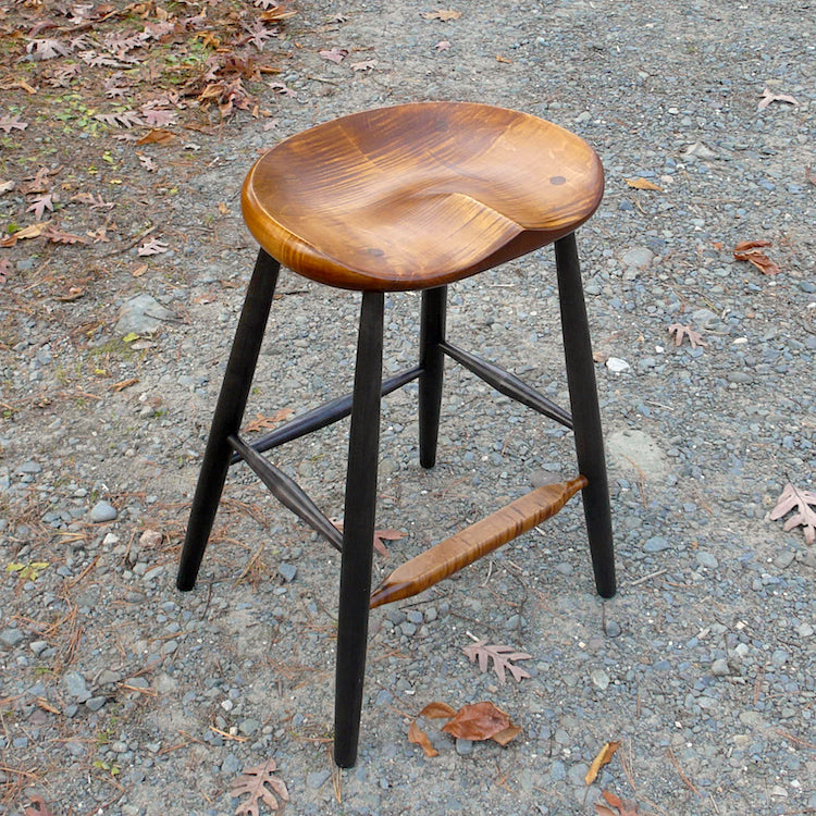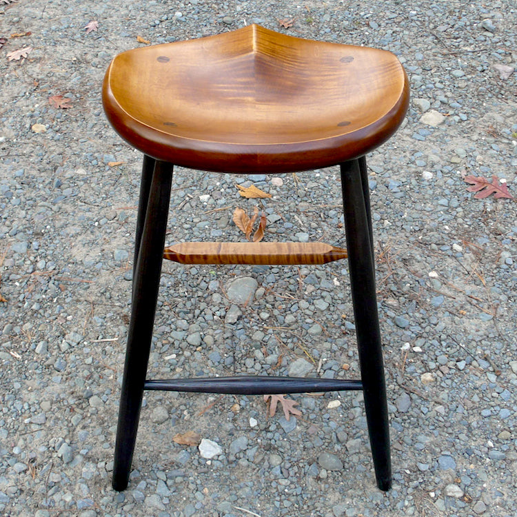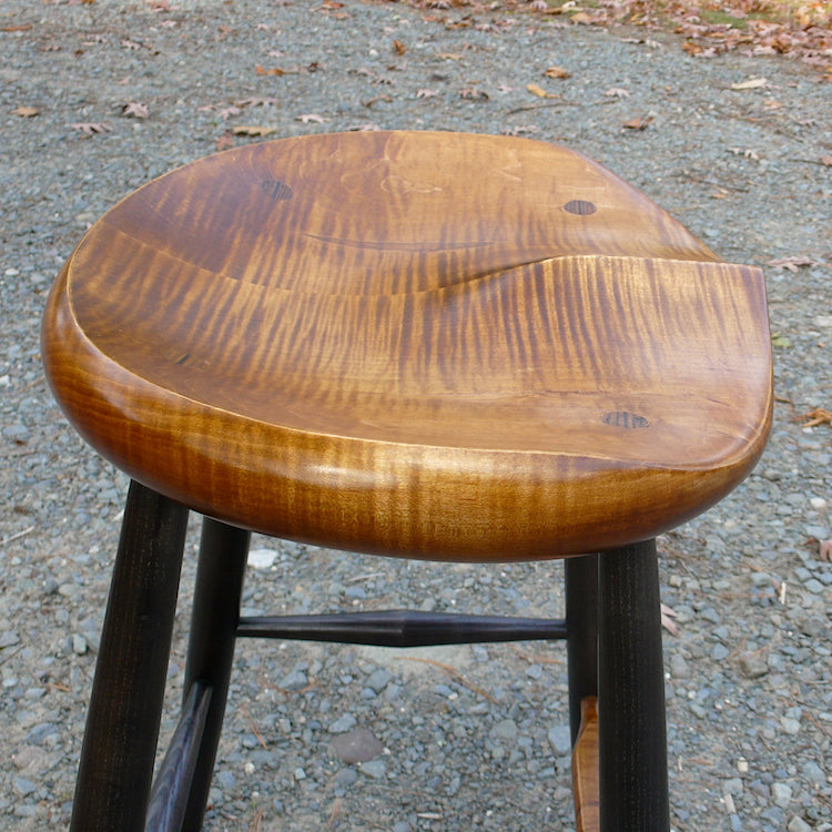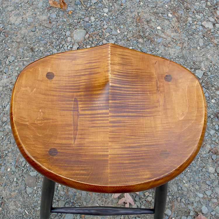 Counter Stool, Tiger Maple with Black Legs - 25" - Oval Seat