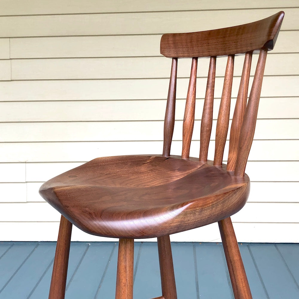 This is a black walnut 25" high stool, +11.5" back, designed for kitchen counter, kitchen island.