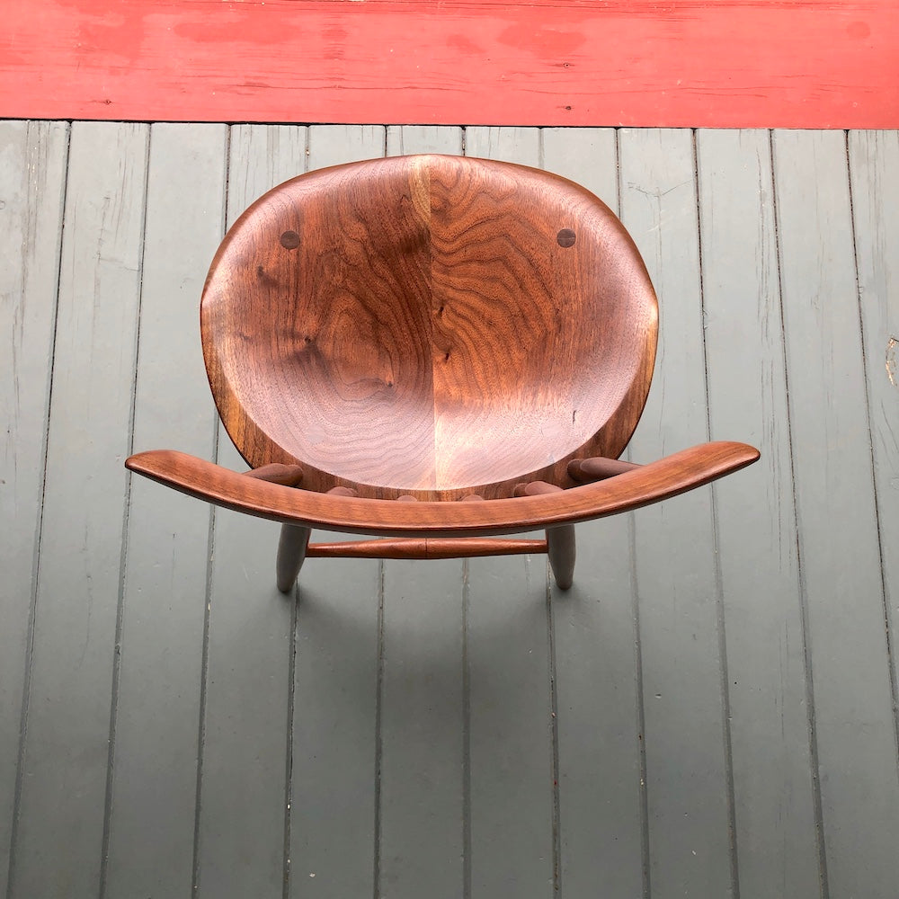 Hand carved from solid black walnut wood following the anatomical curves of the human body.