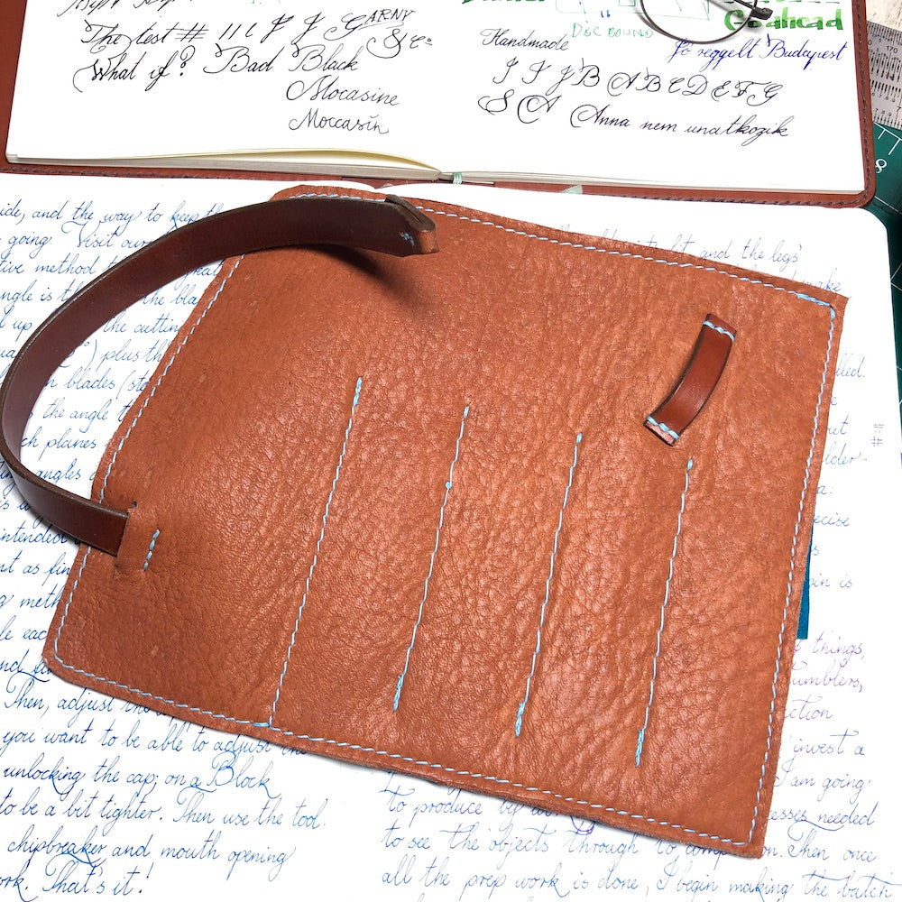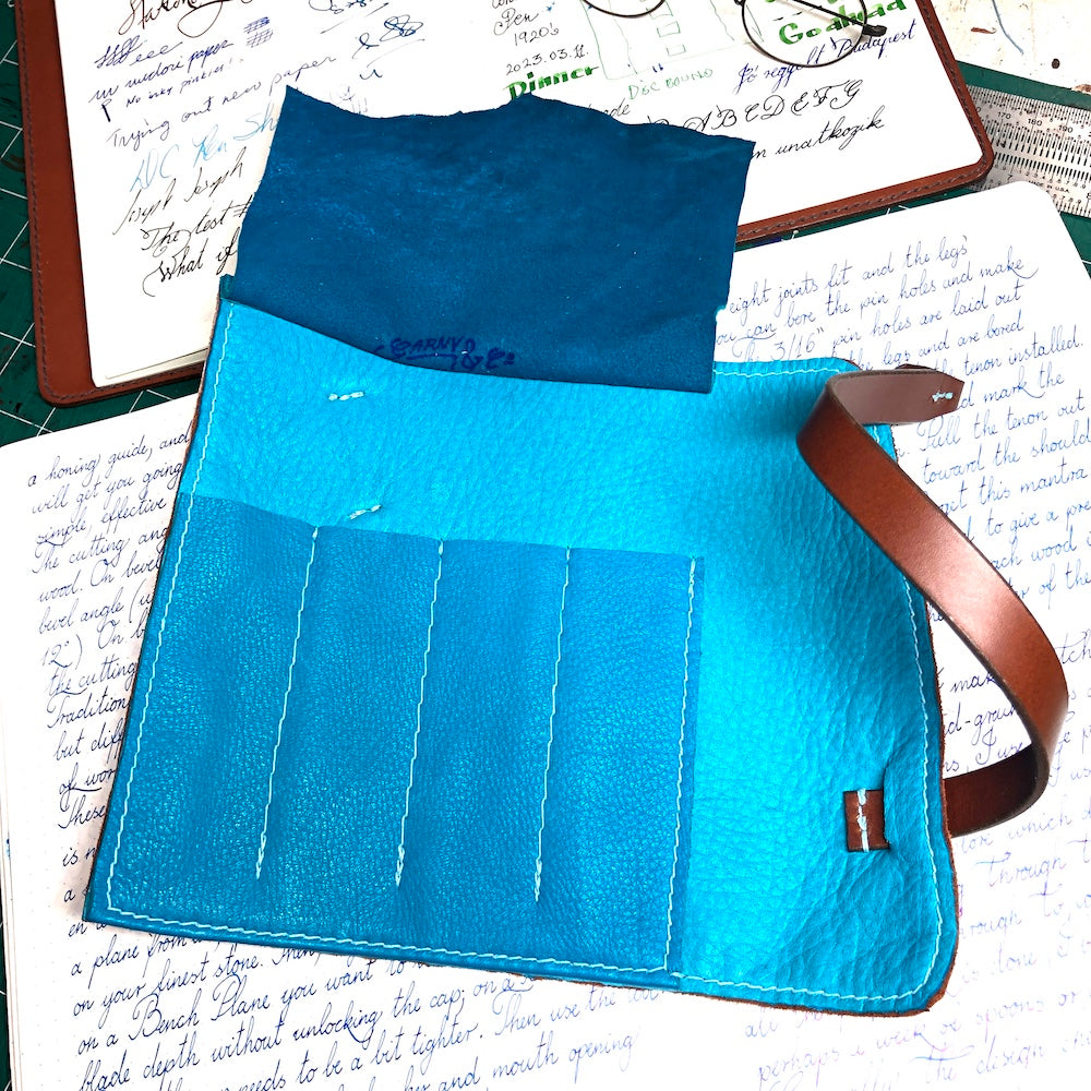 Elk Leather with Deerskin Lining, Pen Roll for 4 or 6 pens