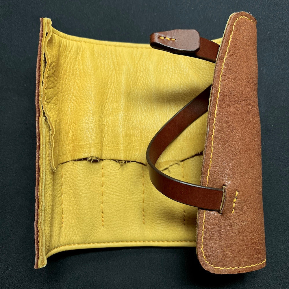 GARNY PEN ROLL - Elk leather pen wrap lined with deerskin.