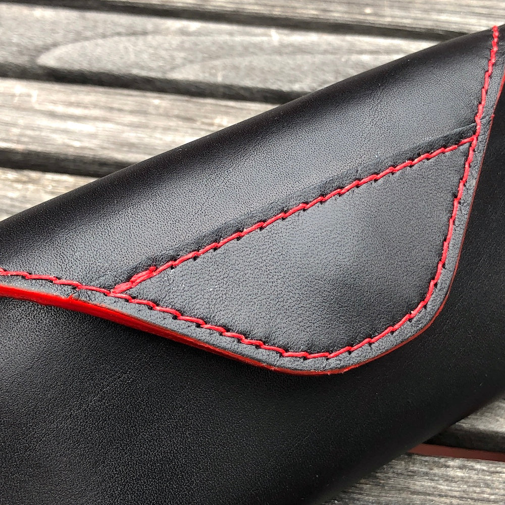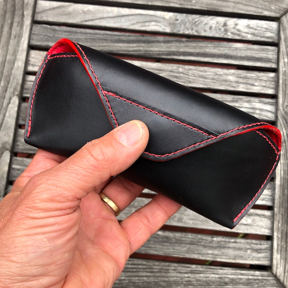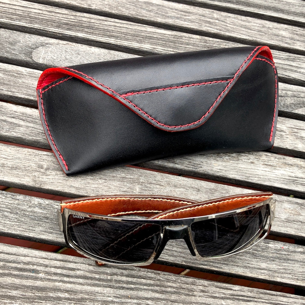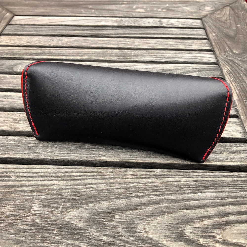 Store and protect your eyeglasses, reading glasses, Rx glasses, prescription glasses and sunglasses in style. Elegant leather eyewear case with magnetic closure for Rx glasses and sunglasses. Handcrafted protective case for eyeglasses and sunglasses with magnetic clasp, unisex. (Sunglasses are not included.)