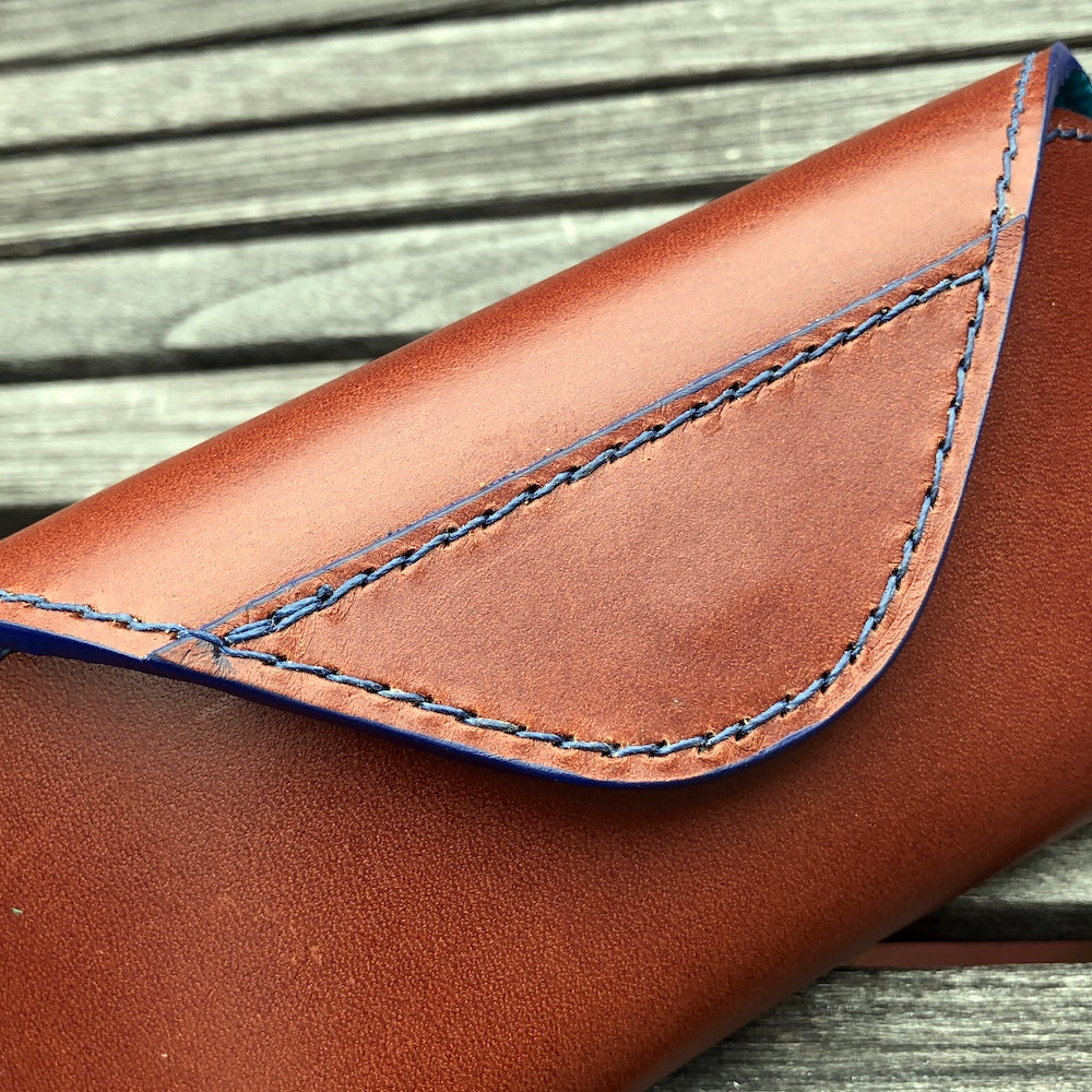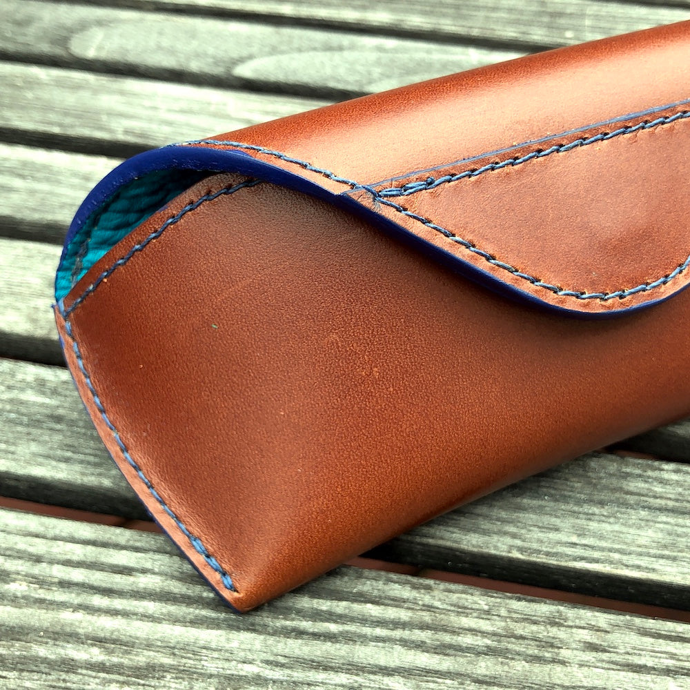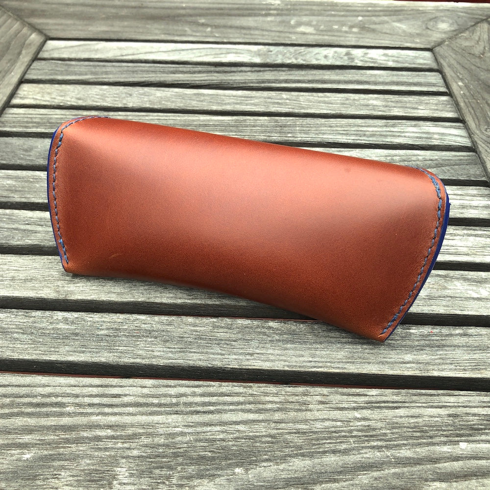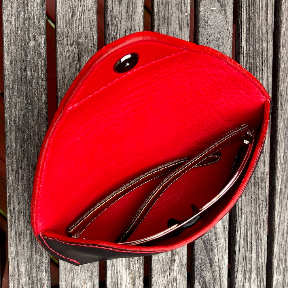 DEERSKIN LINED LEATHER EYEGLASSES CASE WITH MAGNETIC SNAP CLOSURE.
