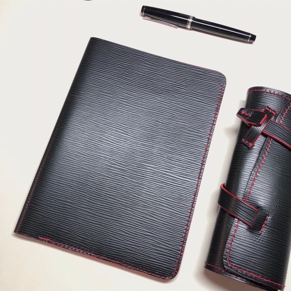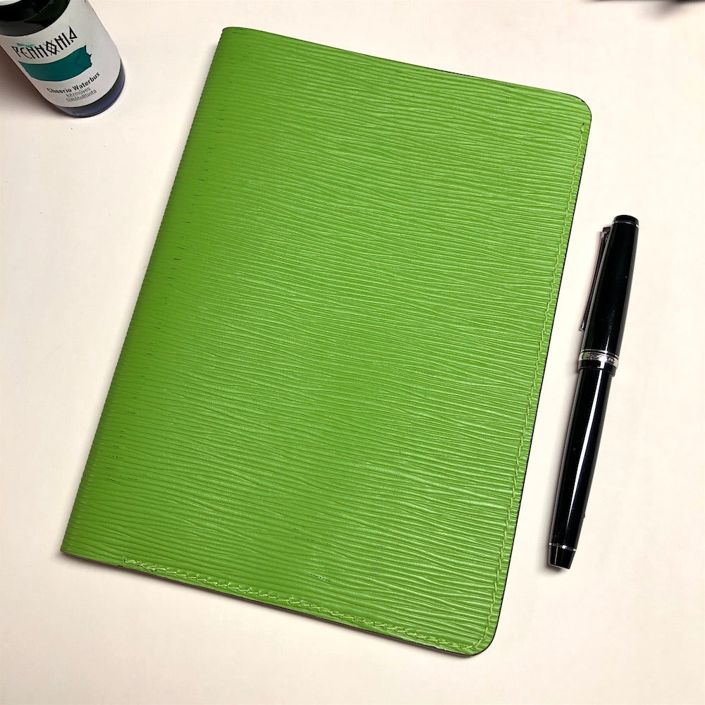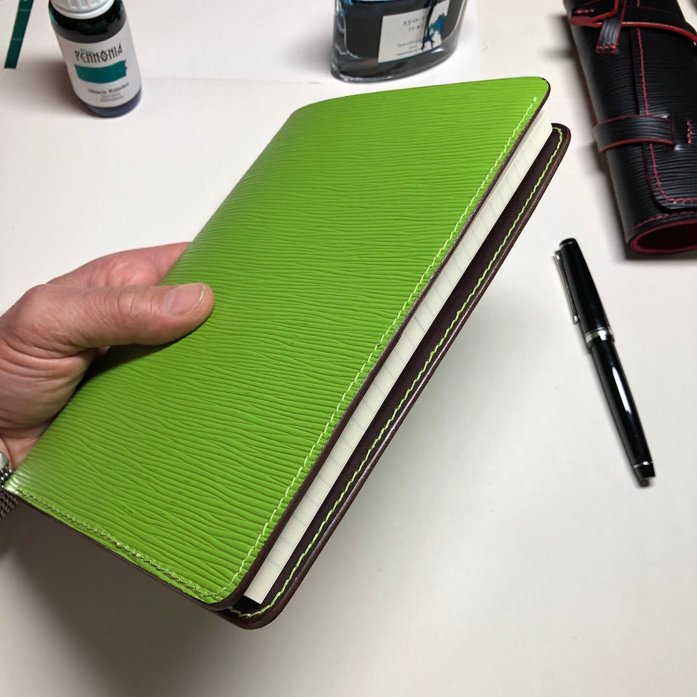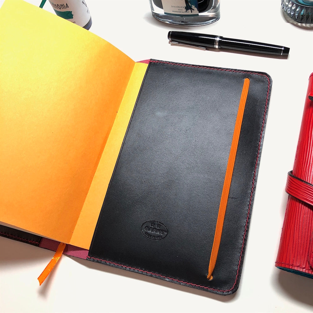 Refillable, EPI leather cover with 3 pockets for any A5 journals and notebooks.