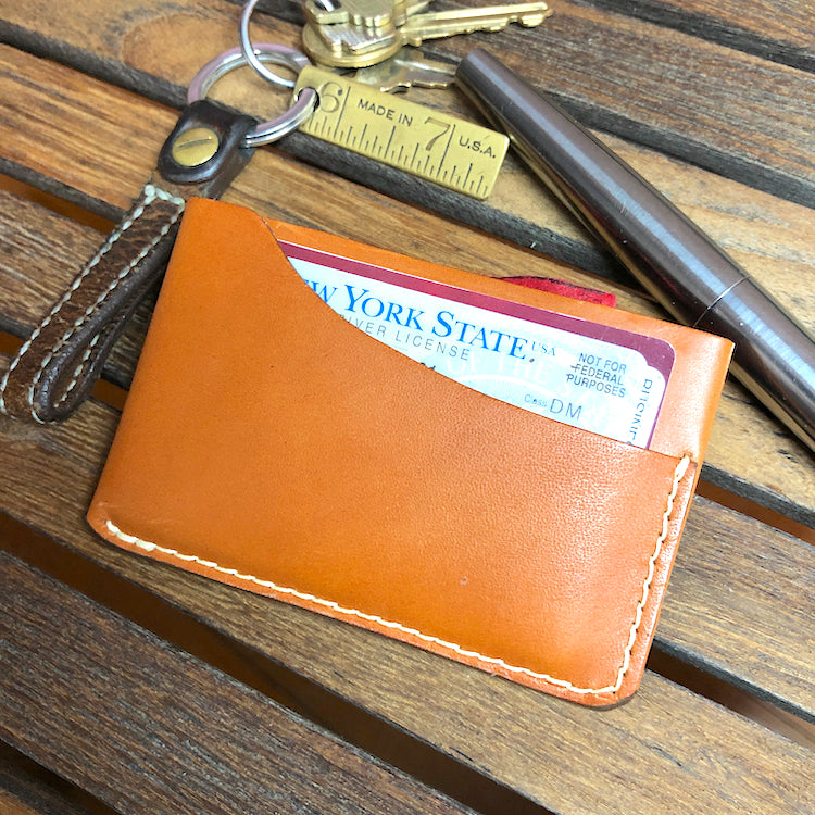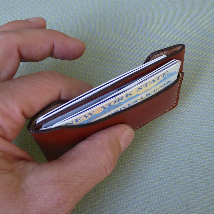 It will hold credit cards, driver license etc. Hand stitched with 2 compartment, back and front, can hold about 10 credit cards. Please expect natural markings.