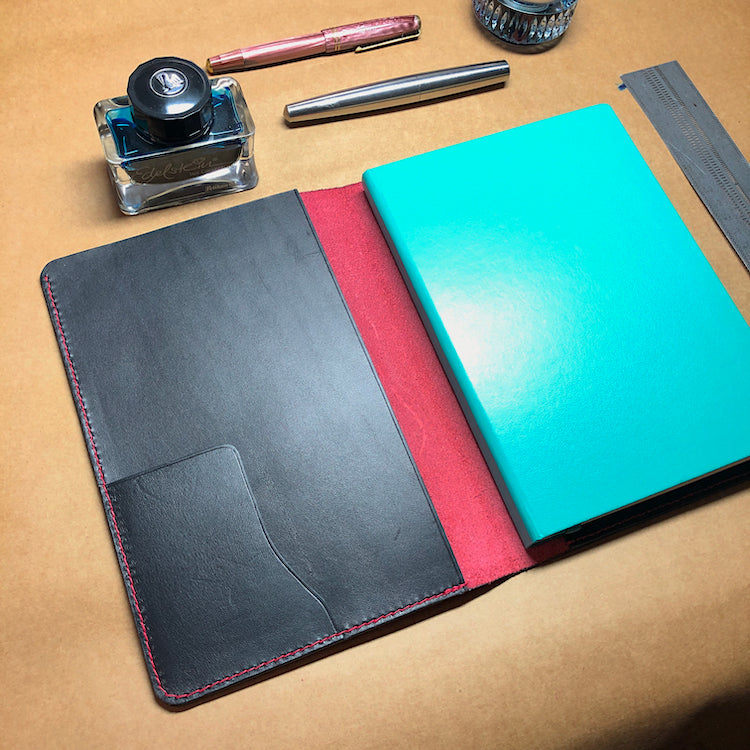 Leather Notebook Cover, Journal Cover - A5 - with 3 Pockets