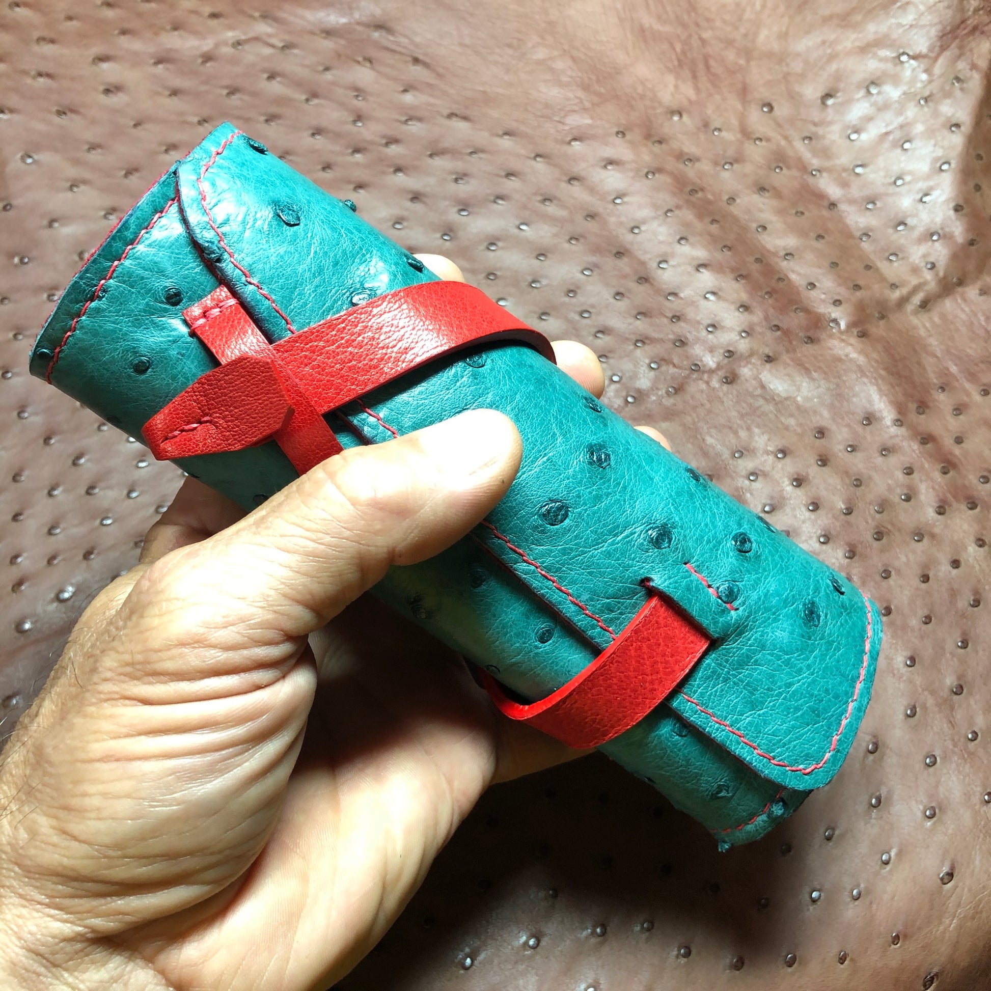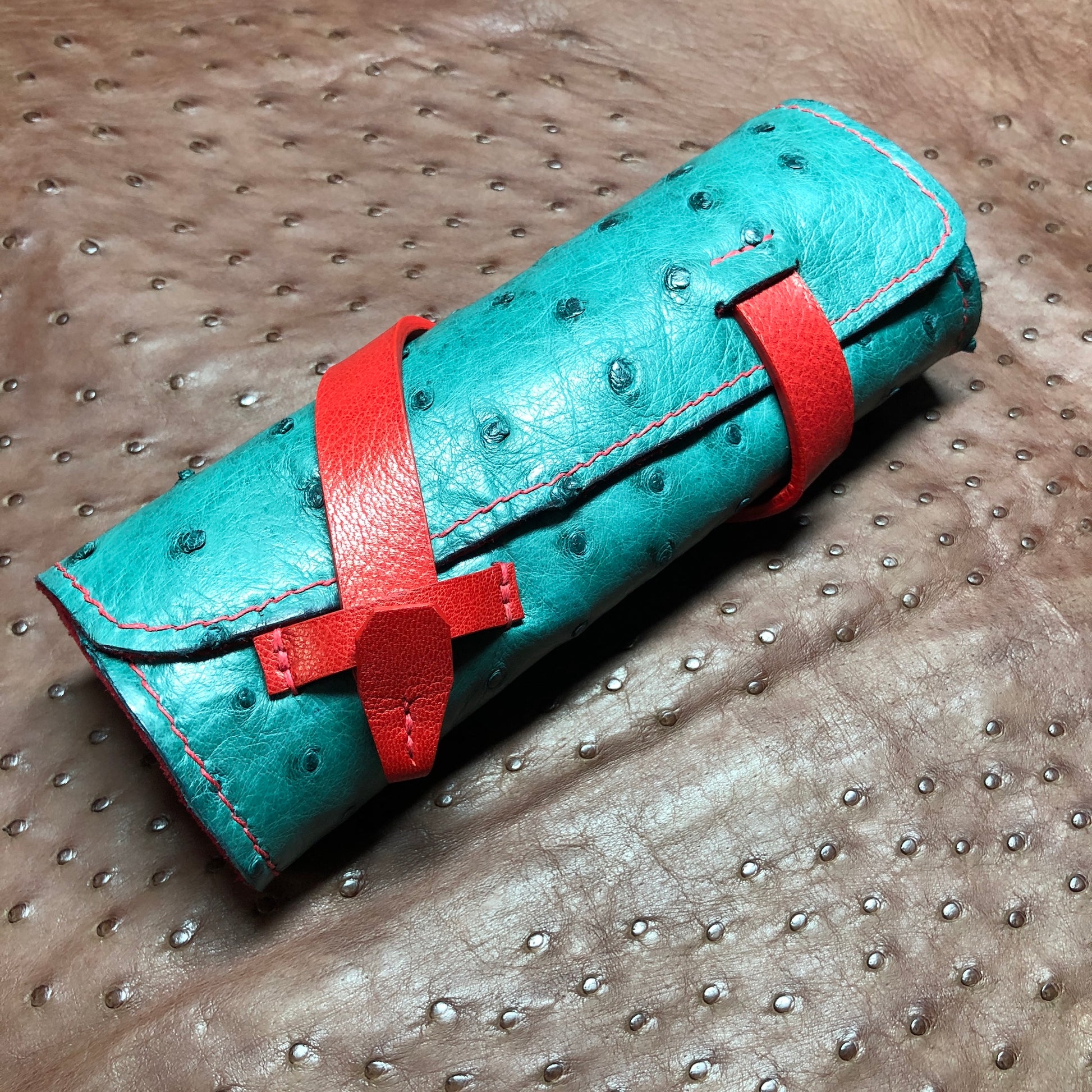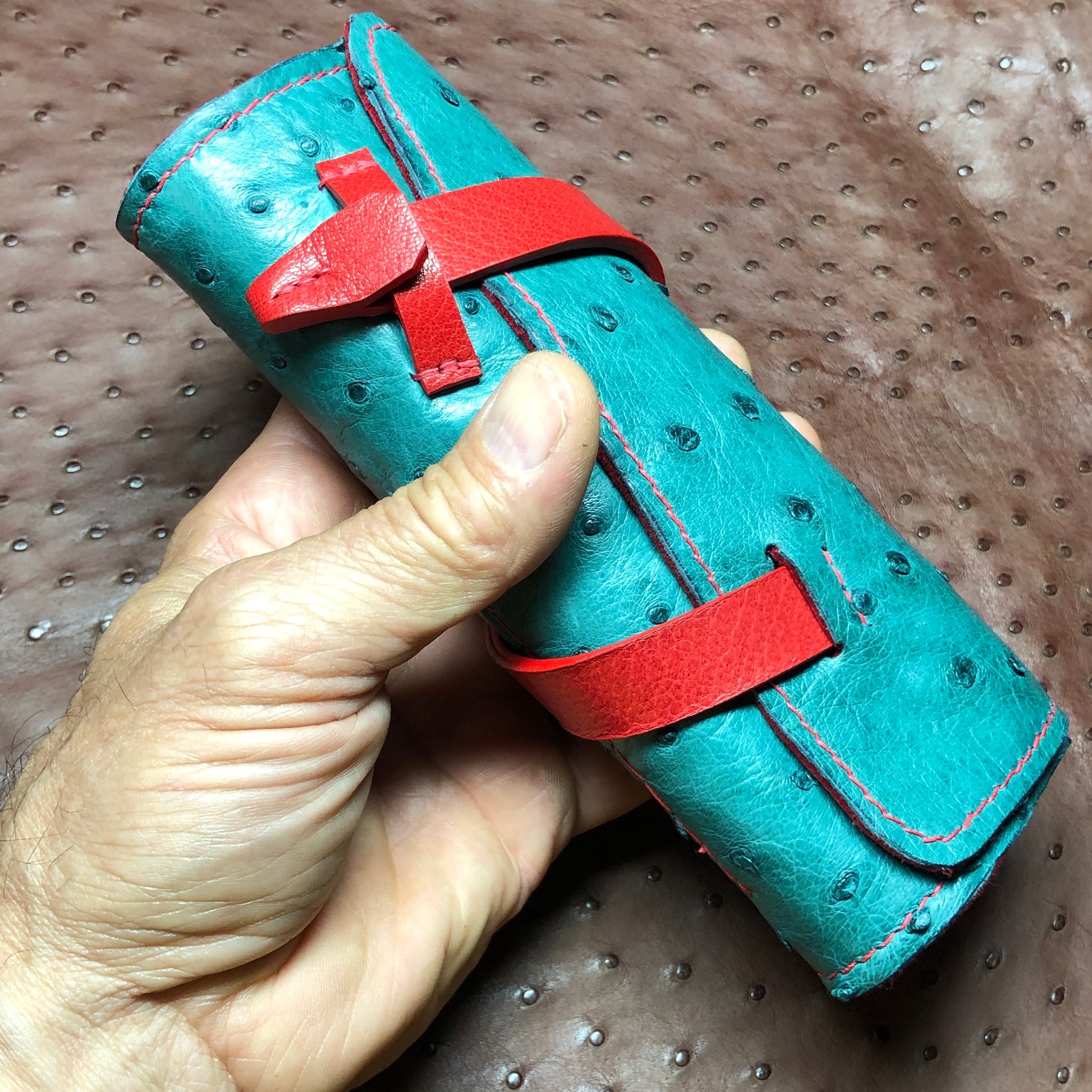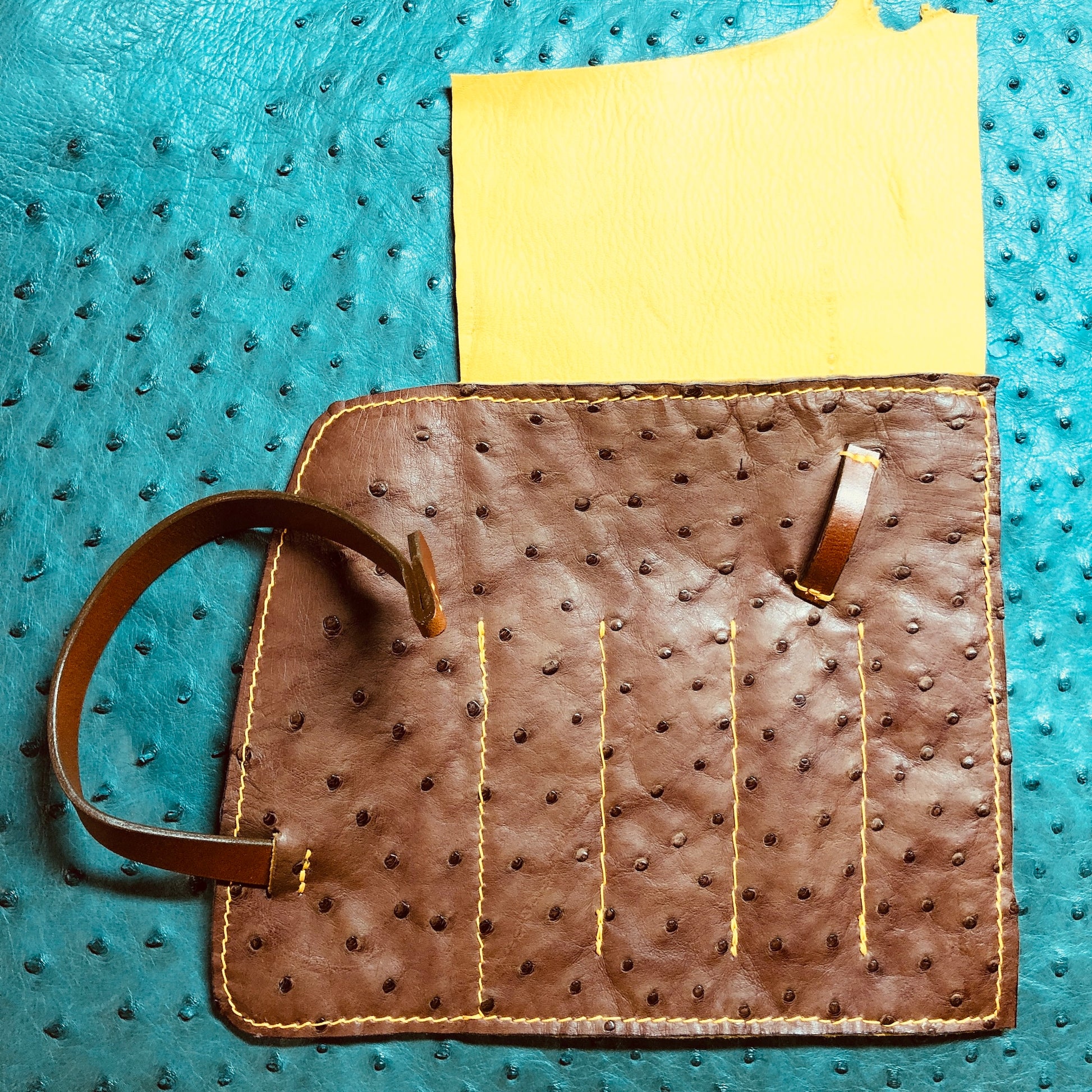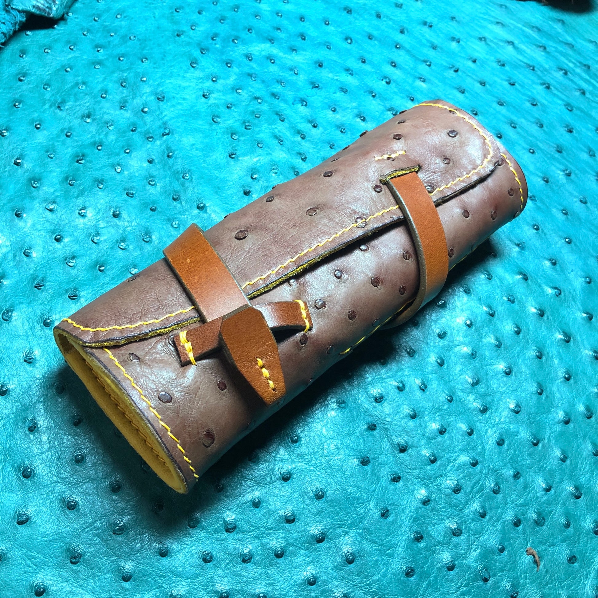 Ostrich Leather with Deerskin Lining, Pen Roll for 4 pens