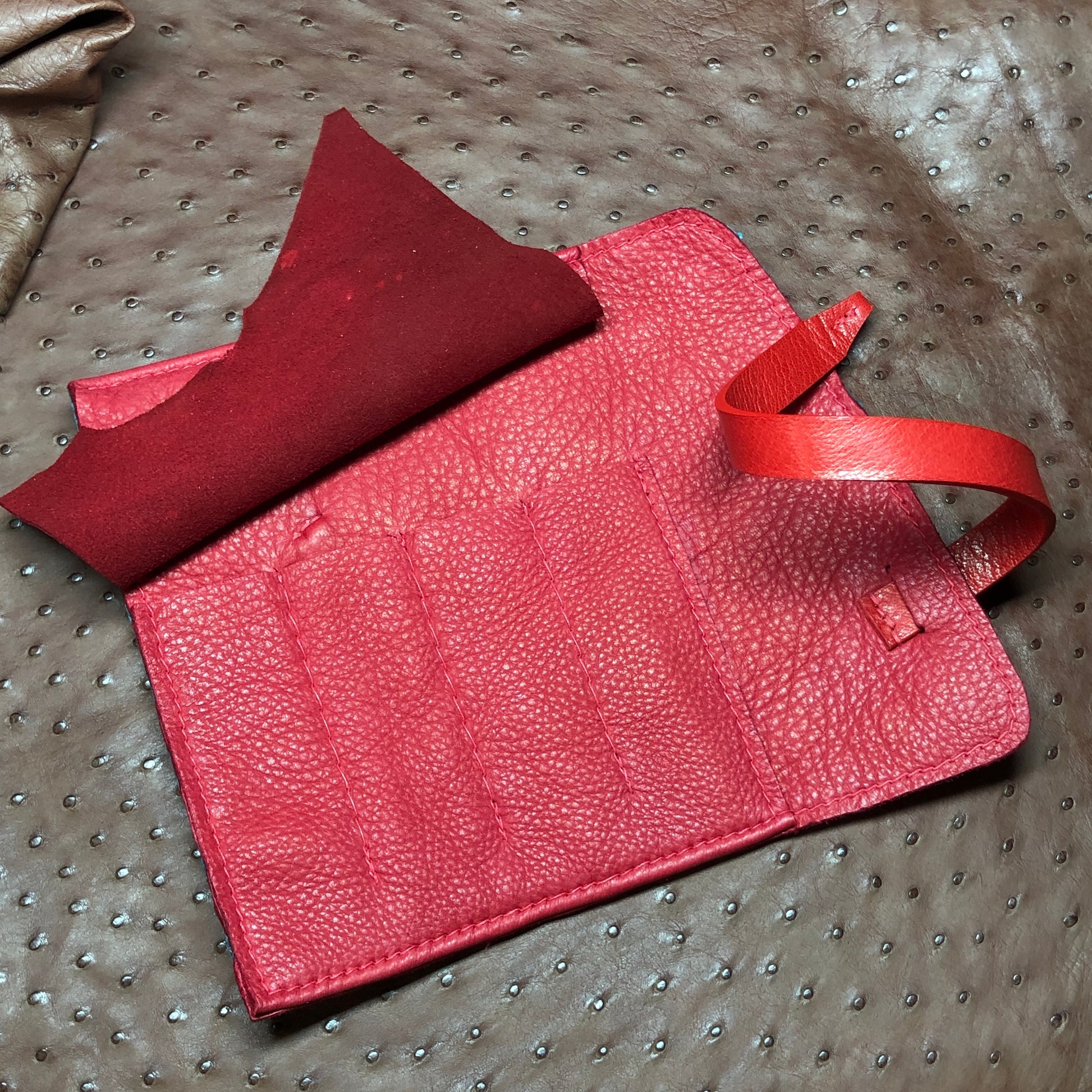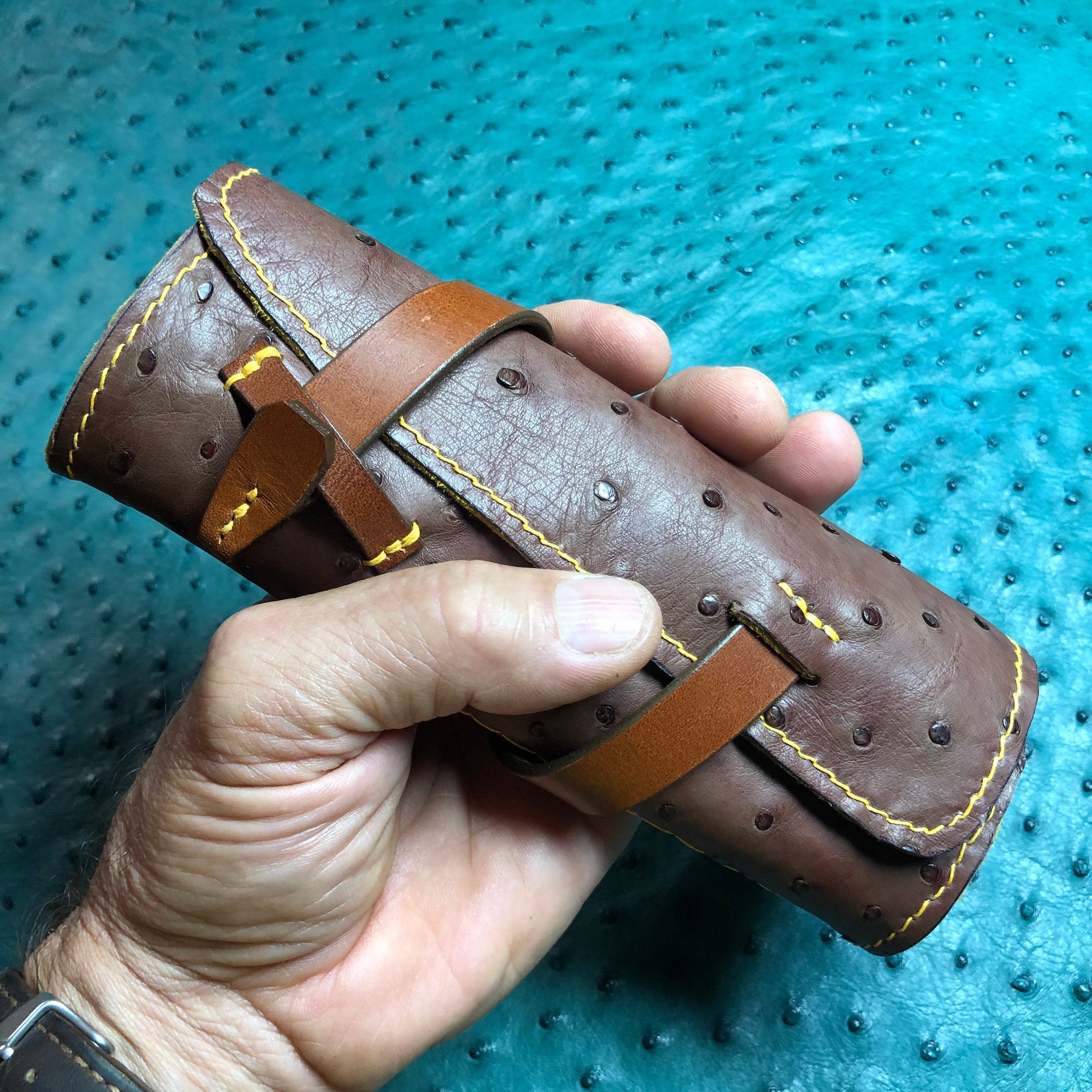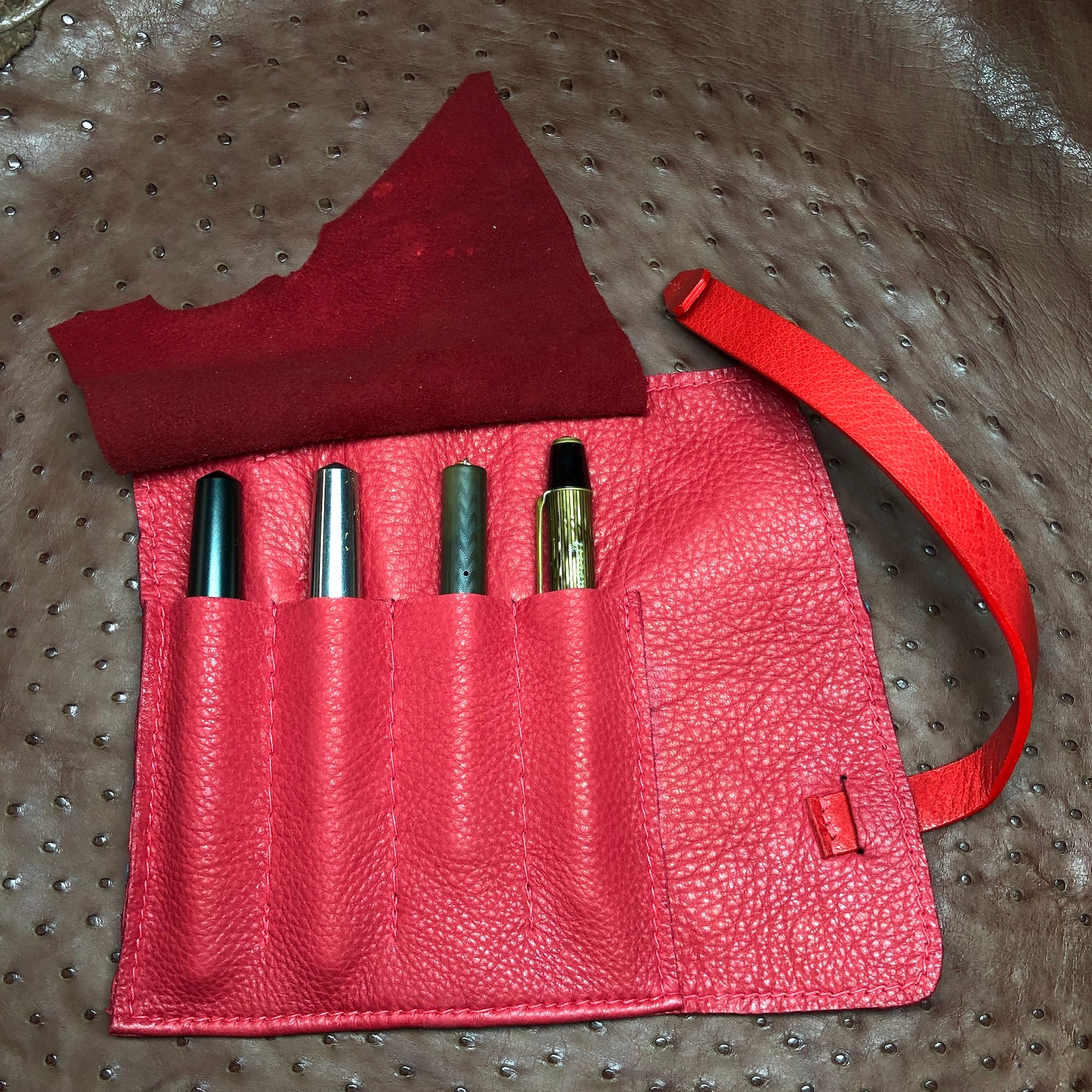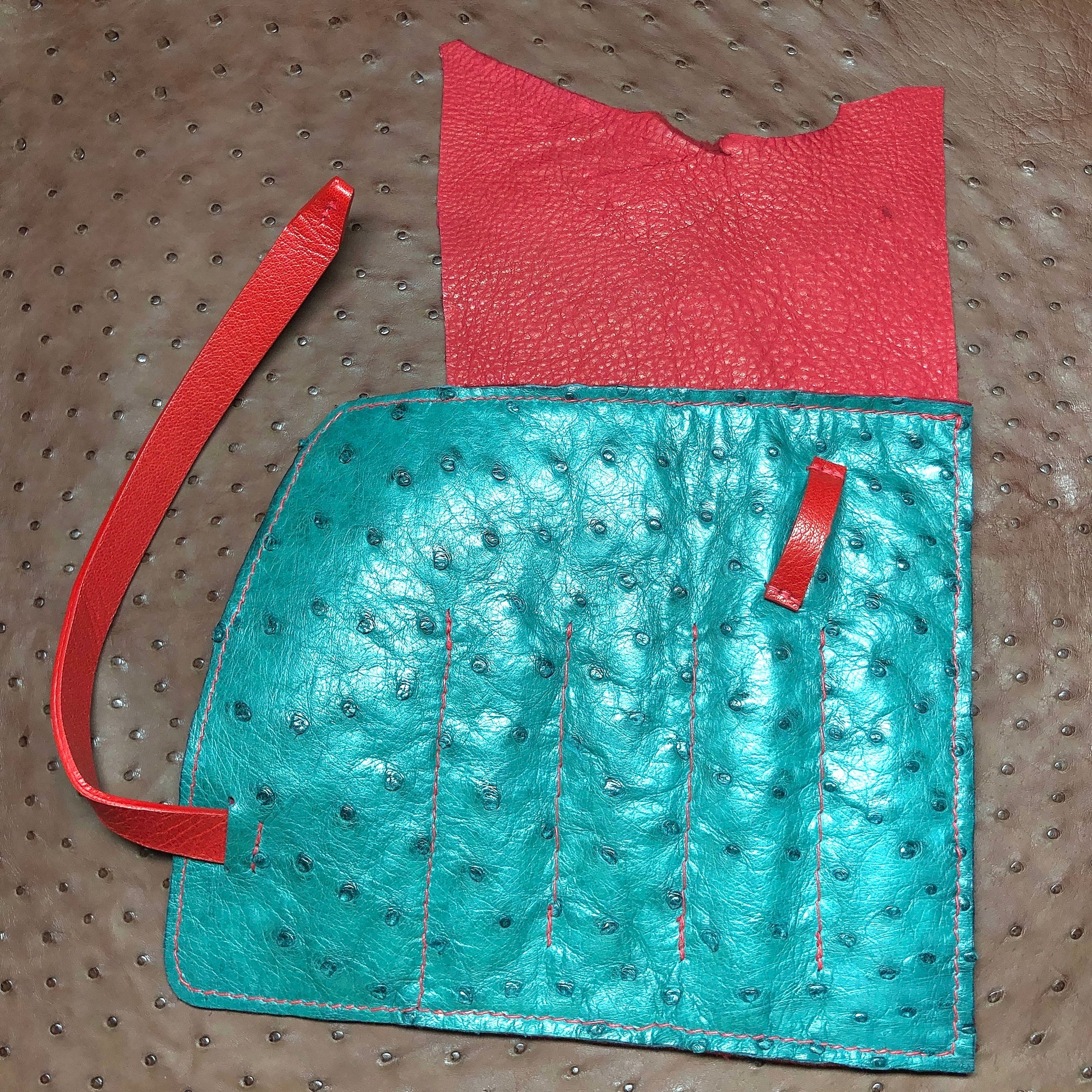 Ostrich Leather with Deerskin Lining, Pen Roll for 4 pens