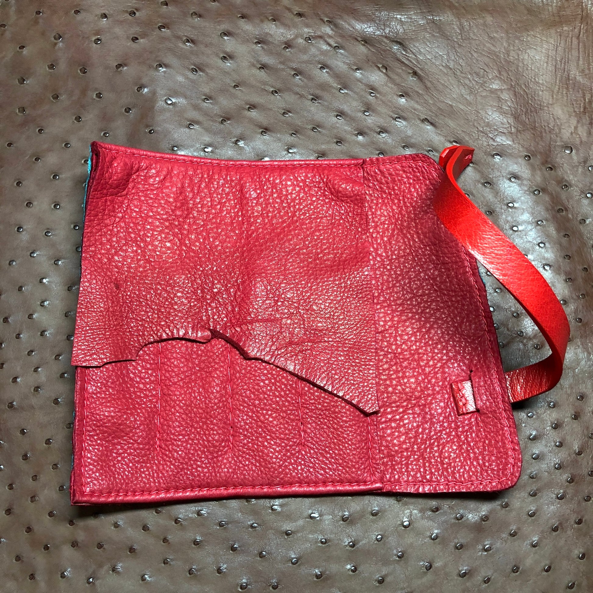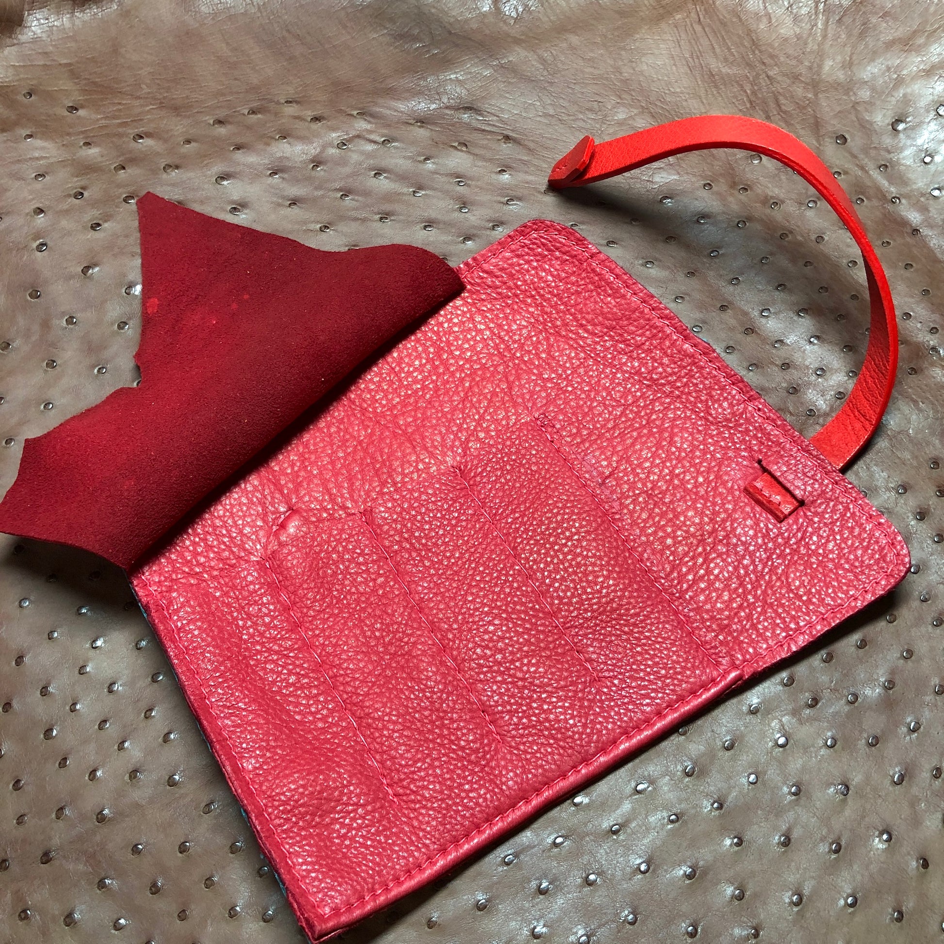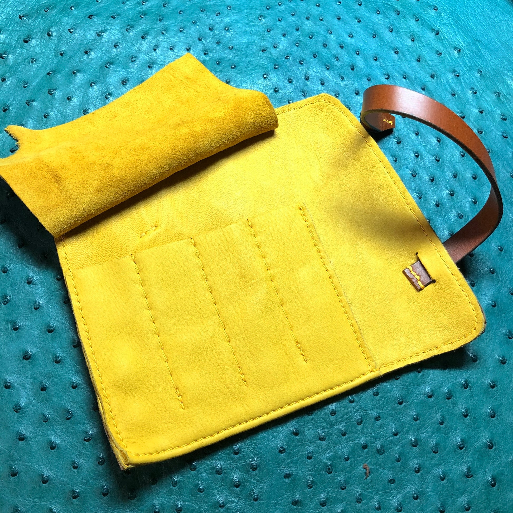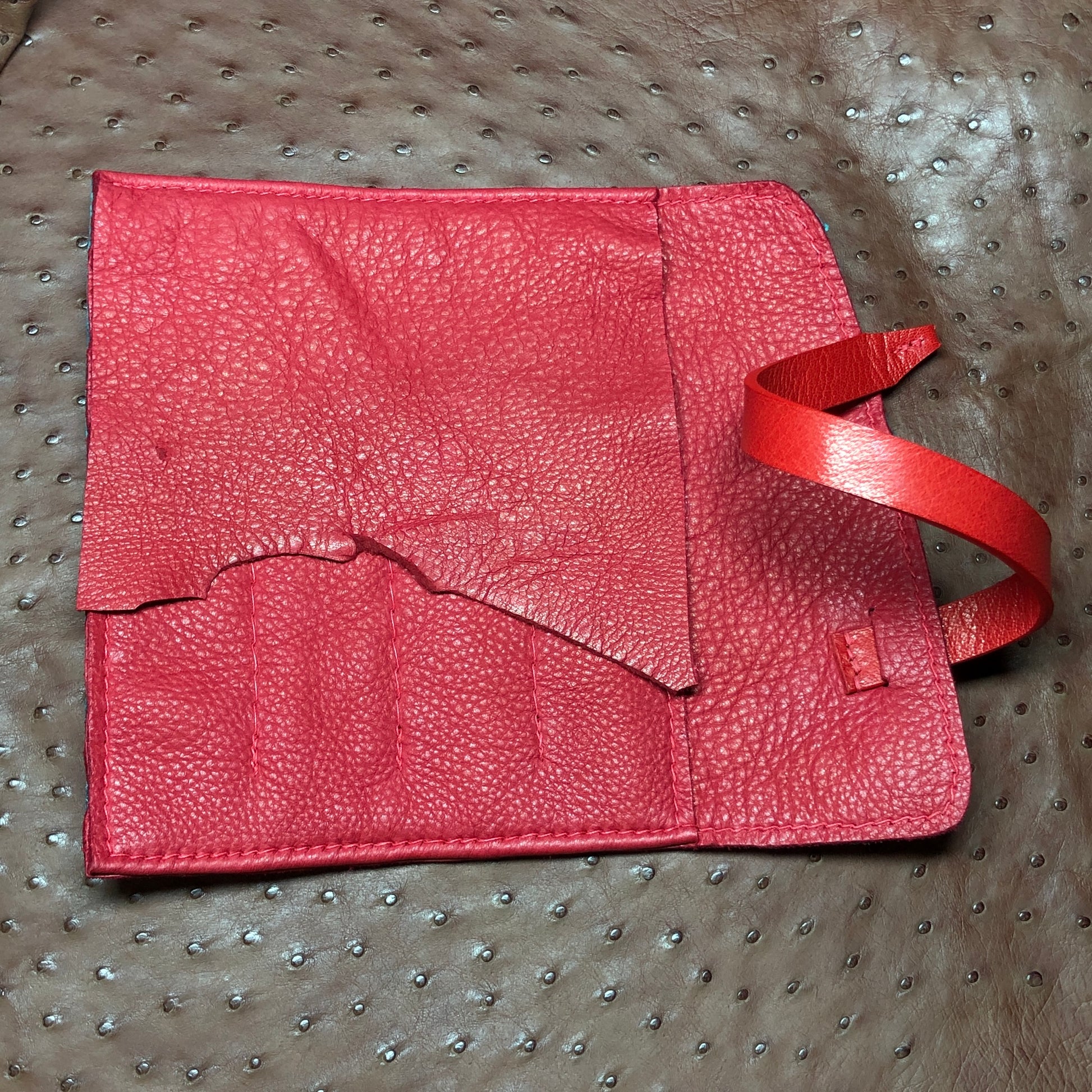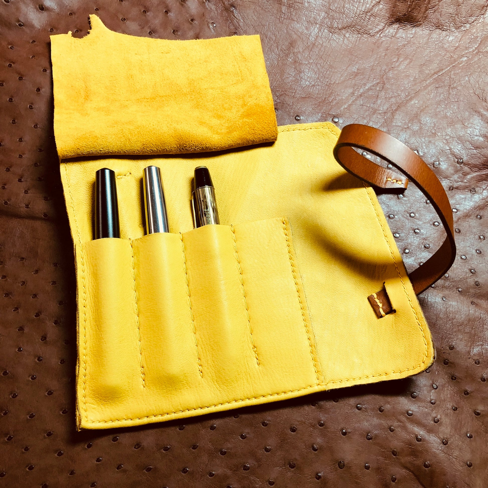 Ostrich Leather with Deerskin Lining, Pen Roll for 4 pens