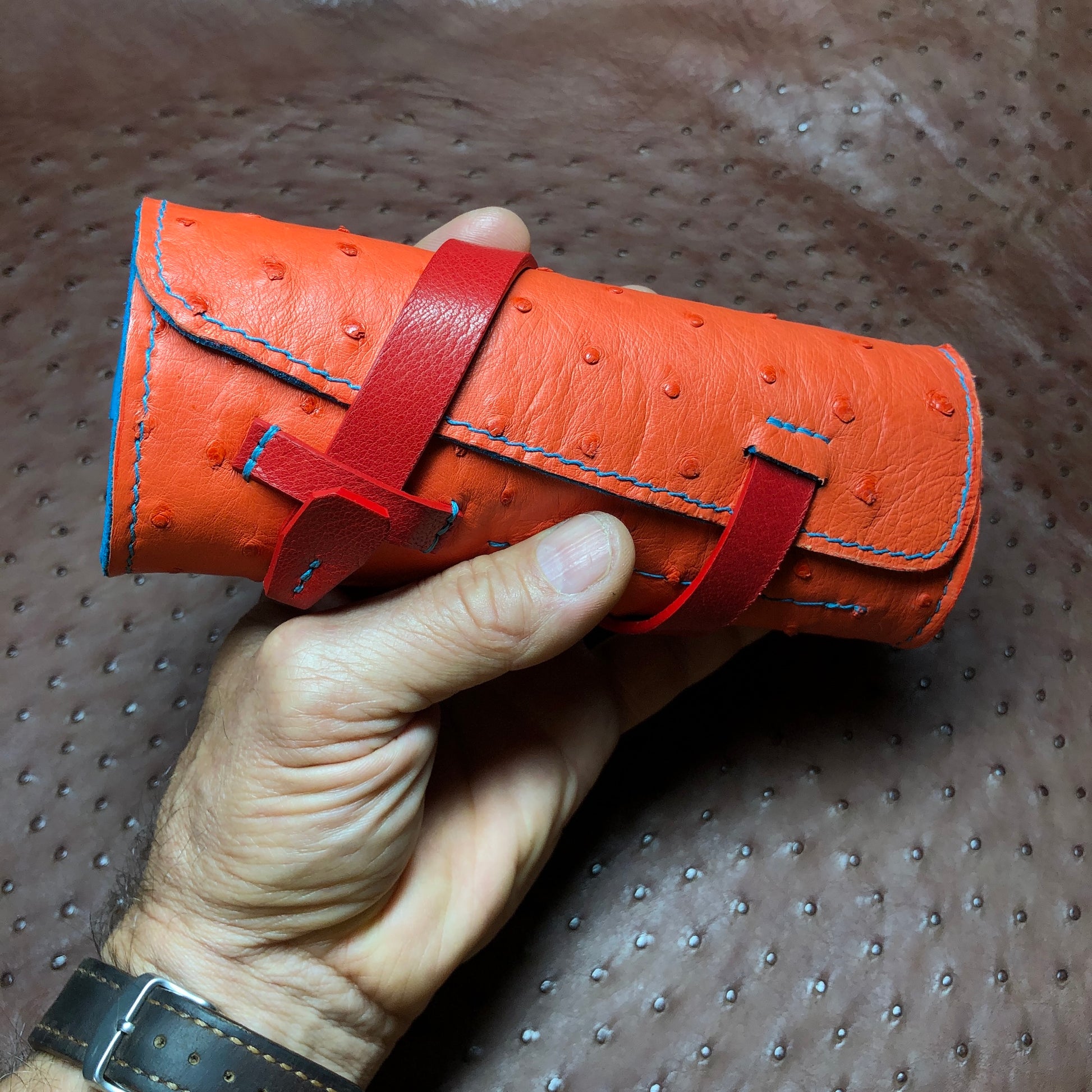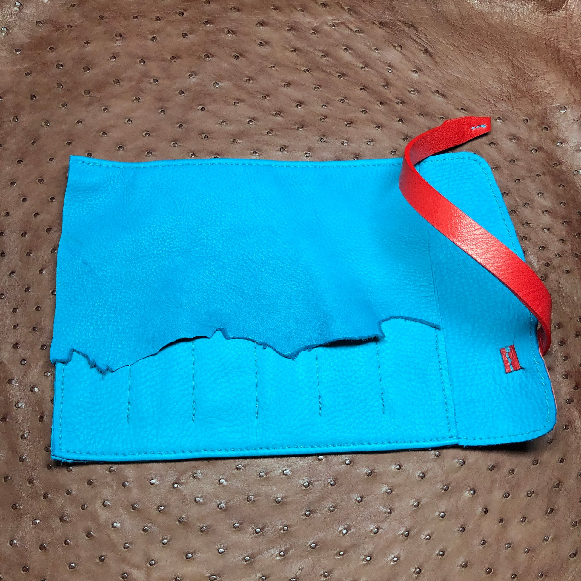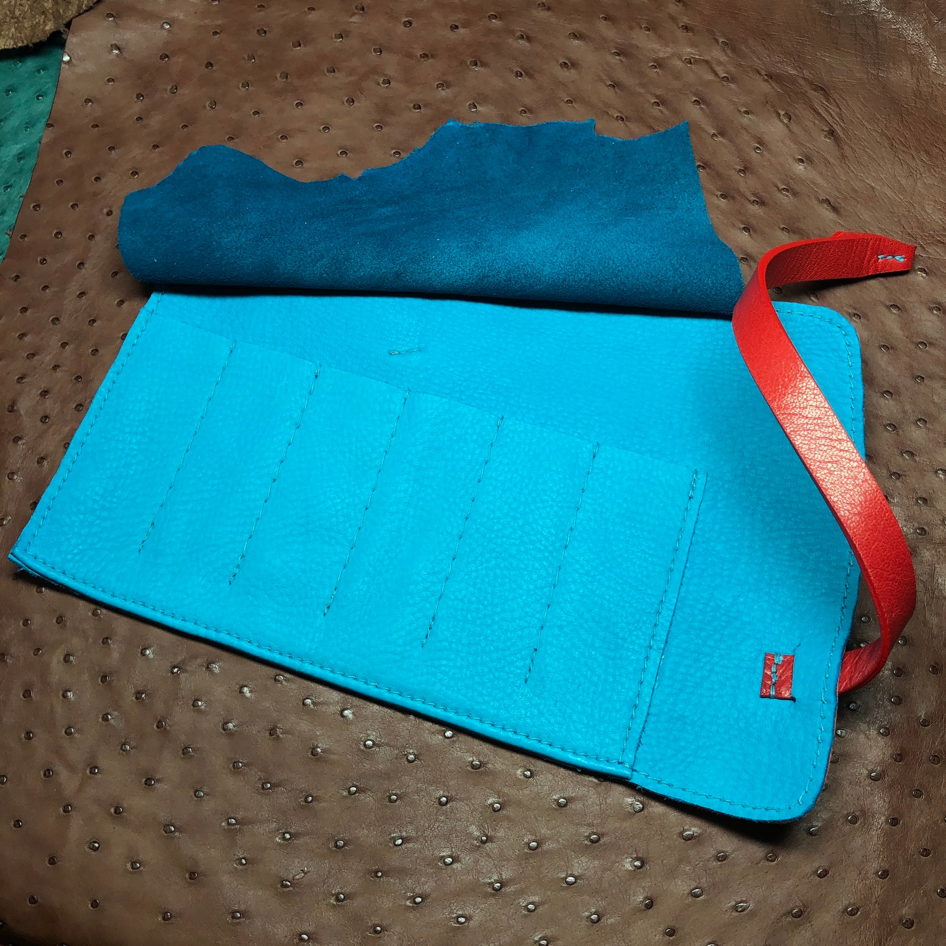 Ostrich Leather with Deerskin Lining, Pen Roll for 6 pens