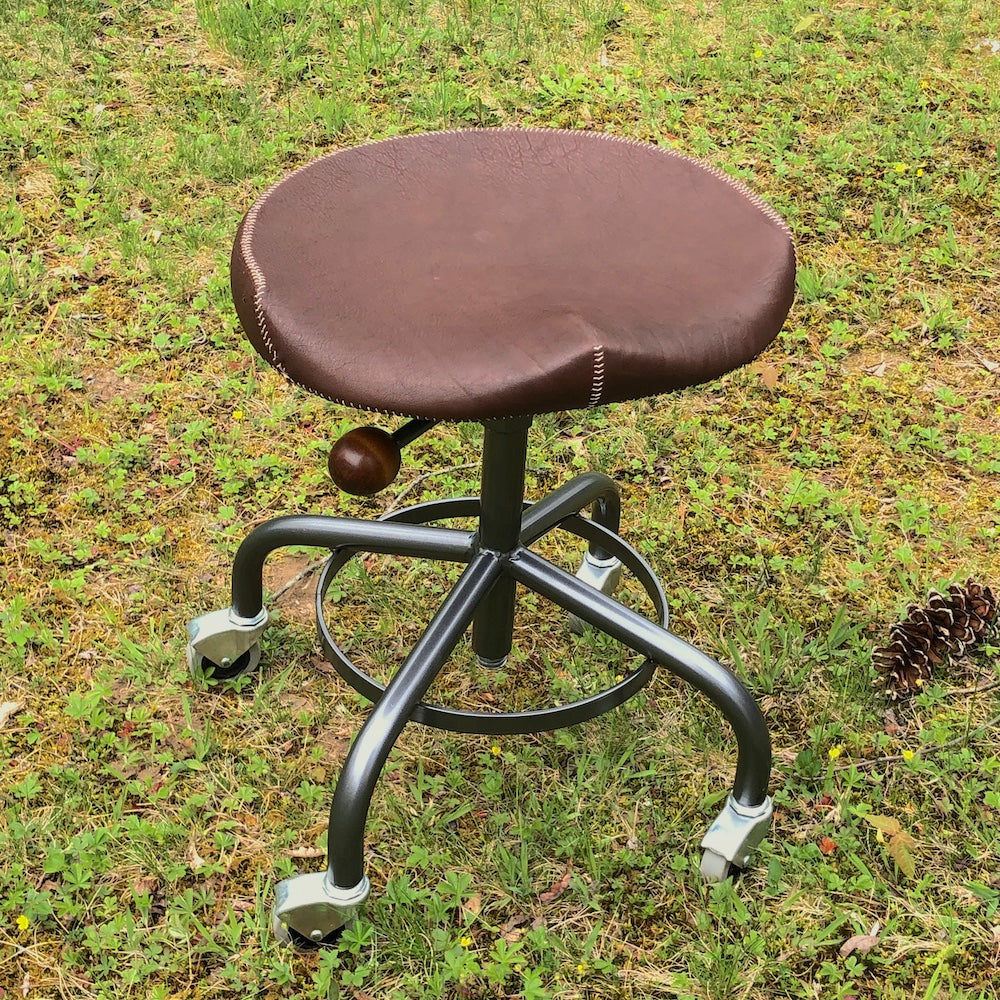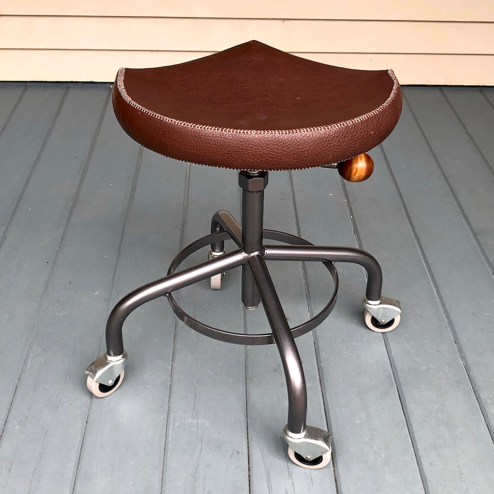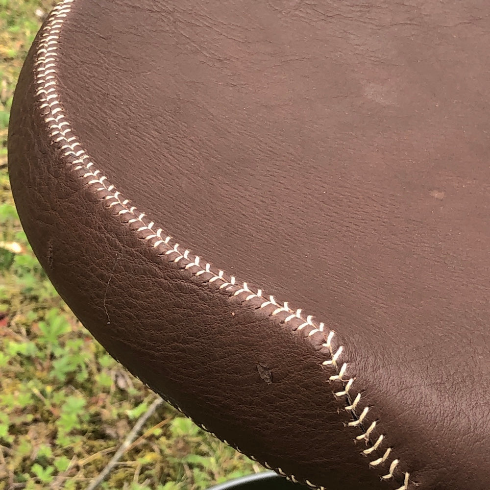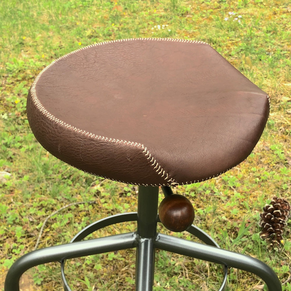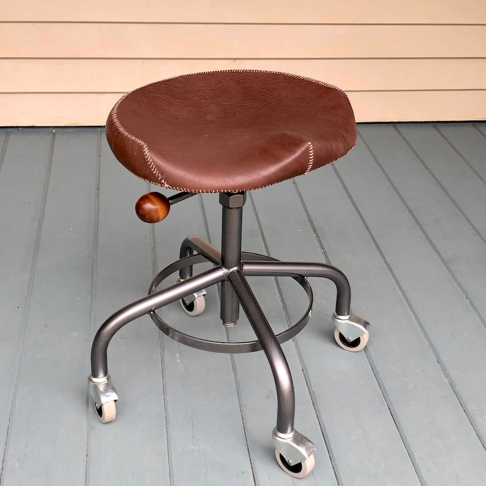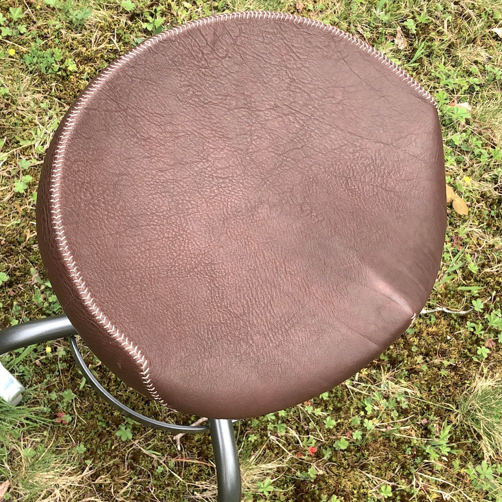 Stool with Metal Base - Hand stitched, bison leather covered seat.